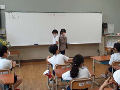 2年生で学んだ九九を使って、対決に盛り上がっていました。