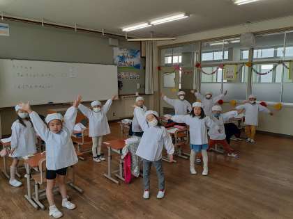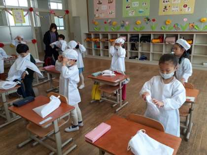 みんな、上手に着れました。明日からの給食が楽しみですね。