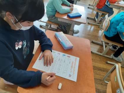 学級目標が「乾隆戦隊 ニネンジャー」ということで、5つの大切にしたいことを、それぞれに書き込んでいました。素敵な二ネンジャーになれるよう、応援しています。