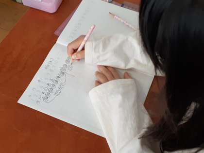 100を使って、計算の仕方を考えました。まずは、自分の考えをノートに書き込んでいました。全体で交流では、友だちの意見をしっかり聞いてメモをしていました。