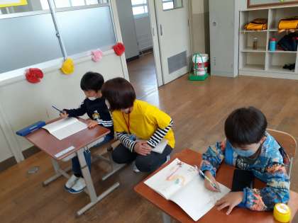 みんな、かしこく本を見たり、絵を描いたりして、楽しんでいました。