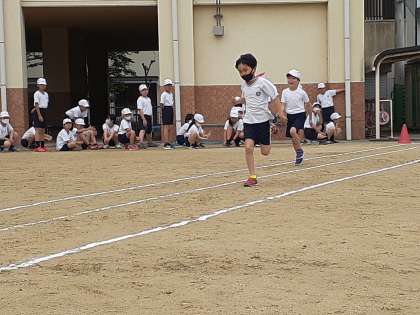 コスモス学級は、3・4年生合同体育で、50メートル走を走りました。