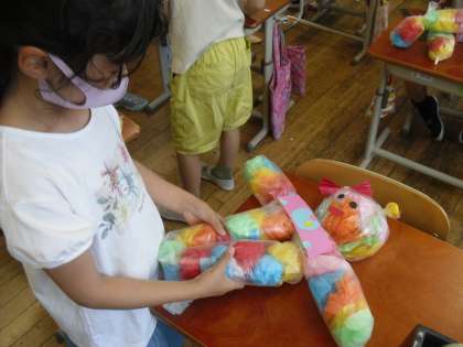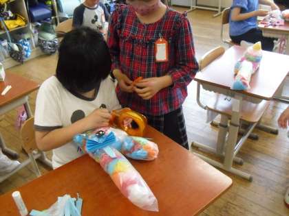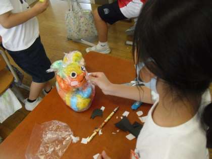 今日は、つくりたい友だちを形に表し、画用紙で目や模様を付けました。子どもたちは、集中しながら取り組んでいました。とっても、素敵な友だちができました。