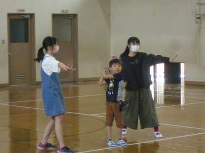 はじめに、1年生入場です。「さんぽ」の音楽に合わせて、1年生が6年生と一緒にポーズを決めて入場しました。2年生以上のお兄さん・お姉さんは,手拍子で迎えます。