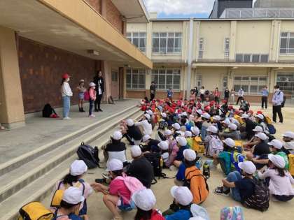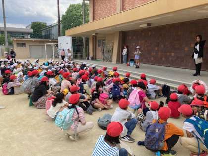 無事に学校に帰ってきて、全校で振り返りをしました。