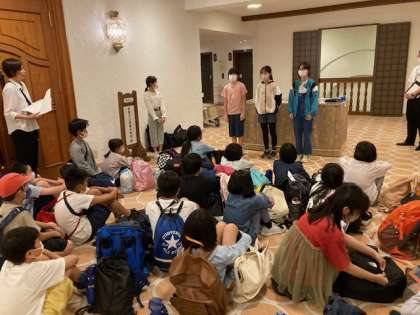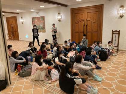 予定通りホテル志摩スペイン村に到着し、入館式をしています。