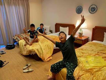 6:50の起床で起きたグループと、それより前から起きて準備をしていたグループ。それぞれでしたが、朝の晴天を見て、皆、テンションが一気に上がりました!