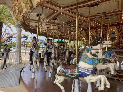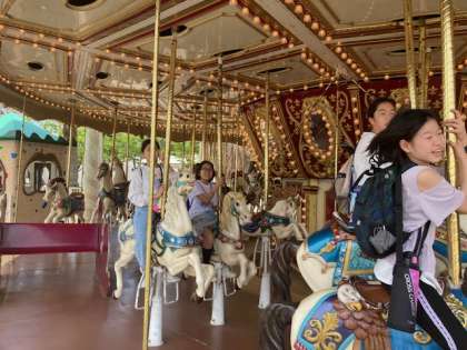 グループでアトラクションを回っています。メリーゴーランドも楽しそうです。