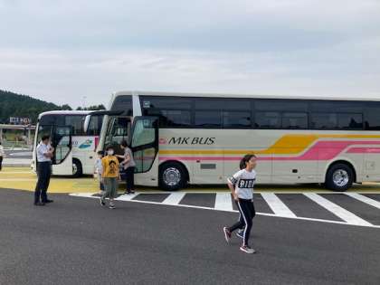 道路の状況によって時間が前後する可能性があります。学校に近づきましたら、スクリレでお知らせします。