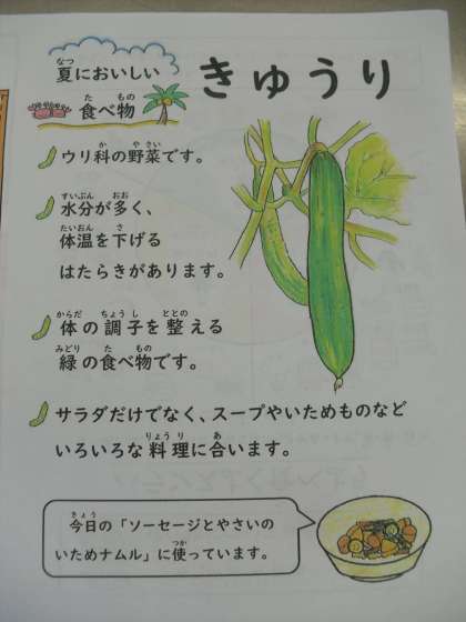 中に入っている「じゃがいも」は油で揚げてから調理してあります。このひと手間があるからこそ、とてもおいしい給食をみんなで食べられるのだと、改めて感謝しています。