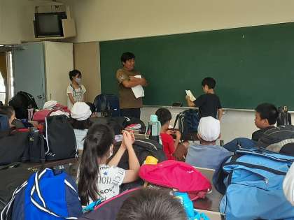 研修室に入り、入所式を行いました。青少年の家の方からお話を聞きました。ここでのルールは一つだけ。「自分がしてもらったらうれしいなあと思うことをしてあげてください。」とのことです。子どもたちはしっかりと聞いていました。みんなが、このような行動がとれるようにしてほしいです。