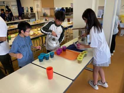 食事係が、みんなのご飯やみそ汁、お茶の準備をしてくれました。