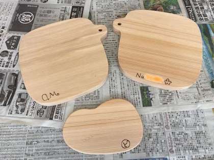 しっかり磨けてスベスベサラサラになったら、鉛筆で名前や目印をかいて、それを木工作家の先生が、文字などをなぞって焼いてくださいました。