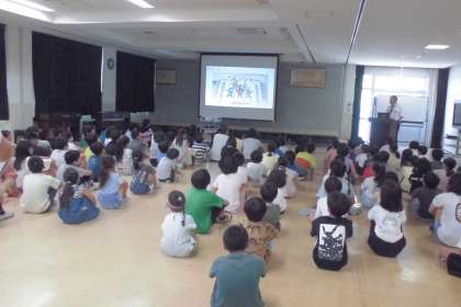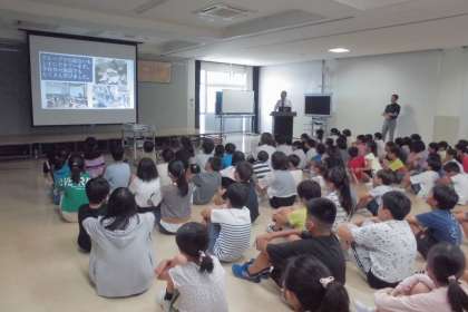 校長先生は、コスモス学級から6年生まで、1学級ごとに学級目標と1学期にがんばったことをお話してくださいました。子どもたちは、1学期の出来事やがんばったことをふり返りながら、静かに聴いていました。
