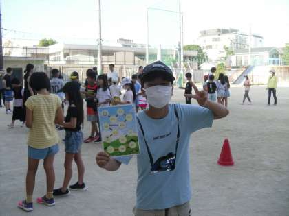 ラジオ体操後は、チェックしたカードを受け取り帰ります。