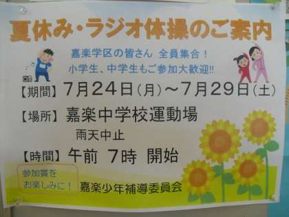 嘉楽学区は、7月29日(土)まで行われますので、ぜひ毎日参加してほしいと思います。