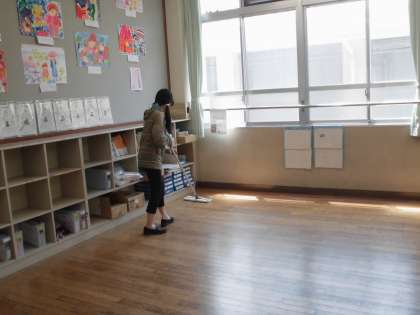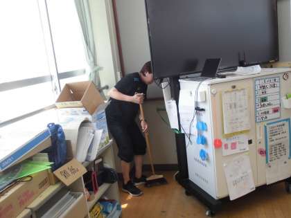 午前中の職員作業に続き、午後からはワックスがけを行っています。