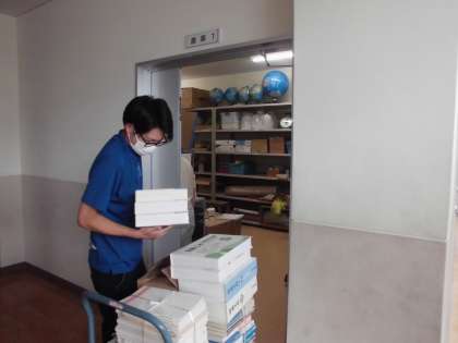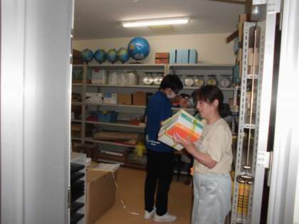 教材室グループは、古い教科書や不必要なものを整理していきました。