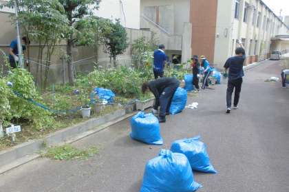 夏休みの間に伸び放題になっていた雑草を抜き取ると、久しぶりに土が顔を見せました。