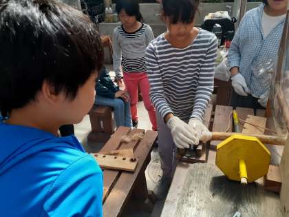 おこした火をろうそくに移しました。