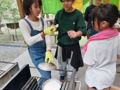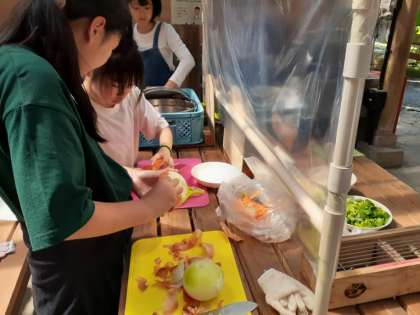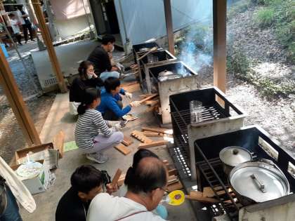 かまど担当や食材担当、ご飯担当に分かれて、取り組んでいます。