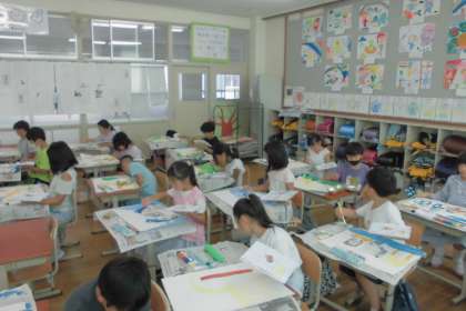 お話の世界に入り込んで、作品づくりをしています。最後まで、ていねいに色を塗っていました。