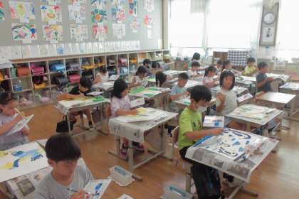 3年生は、図工の「お話の絵」の作品づくりをしています。