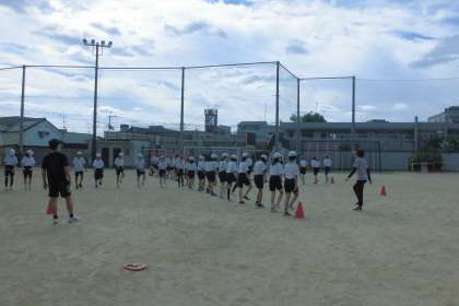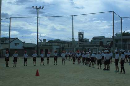 今日は、運動場で集団行動の練習をしました。決められた拍数の間に移動先のポイントまで動かなければなりません。広い運動場の中でも、列を揃えて動くことができるようにがんばっています。