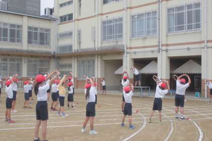 まずは、「全校ダンス」に取り組みました。音楽に合わせて、全校でダンスを踊りました。ダンス係は、全校児童に丁寧に説明してくれました。