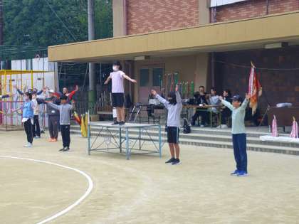 開会式、ご挨拶の後の準備体操では、6年生児童が大活躍!!