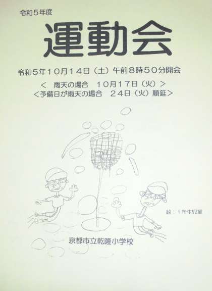明日14日(土)は乾隆小学校の運動会です。子どもたちが精一杯がんばる姿を見ていただき、あたたかいご声援をお願いいたします。