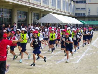 自分たちで走順を決め、みんなでバトンをつないで走り切りました。