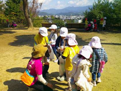 また、船岡山公園では、乾隆幼稚園のお友だちと遭遇。一緒に秋見つけをしました。、