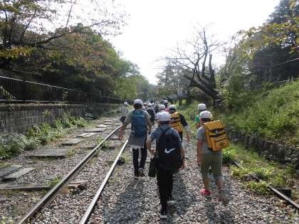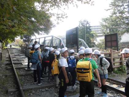 「インクライン」のレールを下から上に歩き、輸送に使われていた船を見学しました。