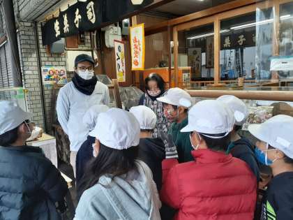 子どもたちは、「大福餅」さんについて、「毎日何個のお餅を作っているんでいるですか。」「一番嬉しいことは何ですか。」など質問しました。お店の方は、丁寧に質問に答えてくださり、お店のことや商品のこと、「仕事」についてなど、色々なお話をしてくださいました。子どもたちは熱心にメモを取りながら聞いていました。