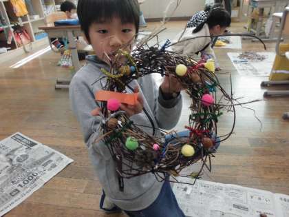 1年生は、生活科の学習で、リースづくりに取り組みました。