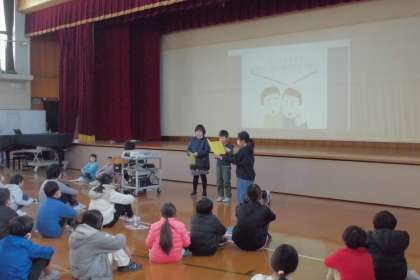 次に2年生の代表が、スピーチをしました。友だちへの感謝の気持ちや友だちがやさしく助けてくれたことなどについて発表しました。