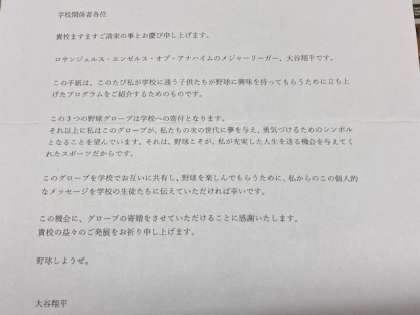 アメリカメジャーリーグの大谷翔平選手からのグローブが届きました。
