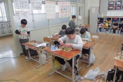 図画工作科「ひみつのすみか」の学習をしています。