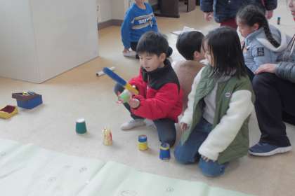 今日は、自分たちが作ったおもちゃや遊びを乾隆幼稚園の園児の皆さんを招待して、一緒に楽しみました。