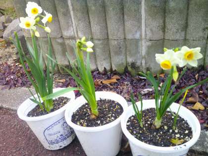 10月半ばに植えたスイセンが花を咲かせ始めました。