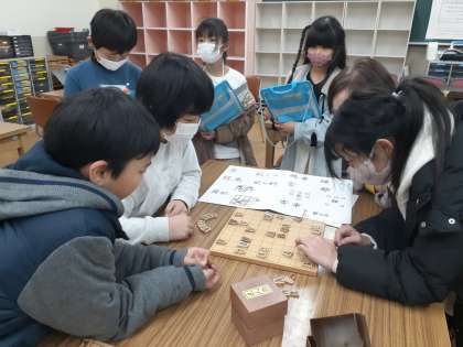 第2図書室では、「将棋・オセロ・百人一首クラブ」が友達と対戦を楽しんでいました。