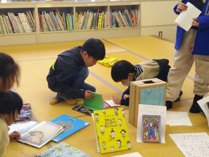 1年生は、図書室で本の貸し借りをしていました。
