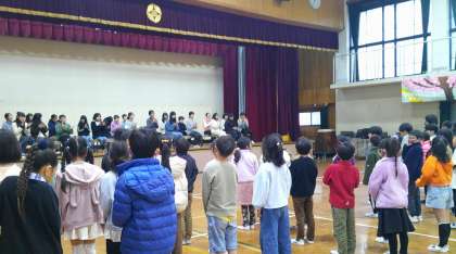 そして、サプライズで在校生と教職員から「素敵な友だち」の歌のプレゼントをしました。素晴らしい歌声が体育館に響き、6年生も感動していました。