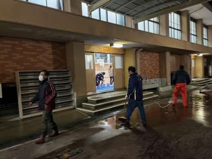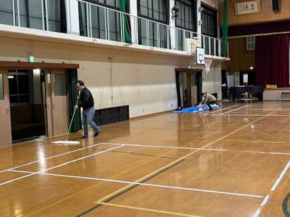 本日、日頃より体育館を使用されている体育振興会や育友会の方々による「夜の体育館清掃」が行われました。毎年、卒業式前に子どもたちのために体育館をきれいにしていただいています。