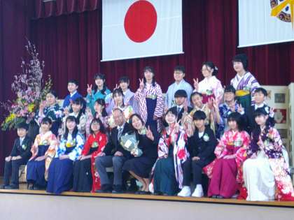 最後の学活を終え、体育館で記念写真を撮りました。みんな素敵な笑顔です。