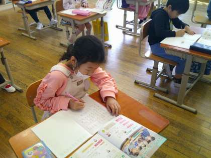 今日は、計算の仕方を考えようの学習をしていました。ノートの使い方についても、しっかり学べたようです。
