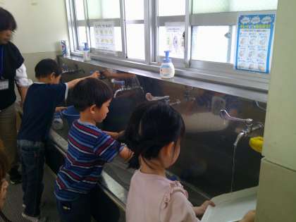 今日から給食の始まりです。1年生の子どもたちは、学校の給食に期待を膨らませていました。入学祝いのメニューをどの子もモリモリ食べてくれました。