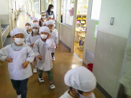 初めての給食 1年生(4月16日)