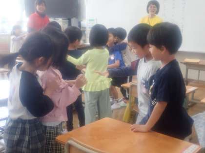 昨年度から、幼小連携・接続「架け橋プログラム」の取組で、幼稚園の先生が1年生の教室に、様子を見に来ていただいたり、読み聞かせをしてもらったりして交流をしています。